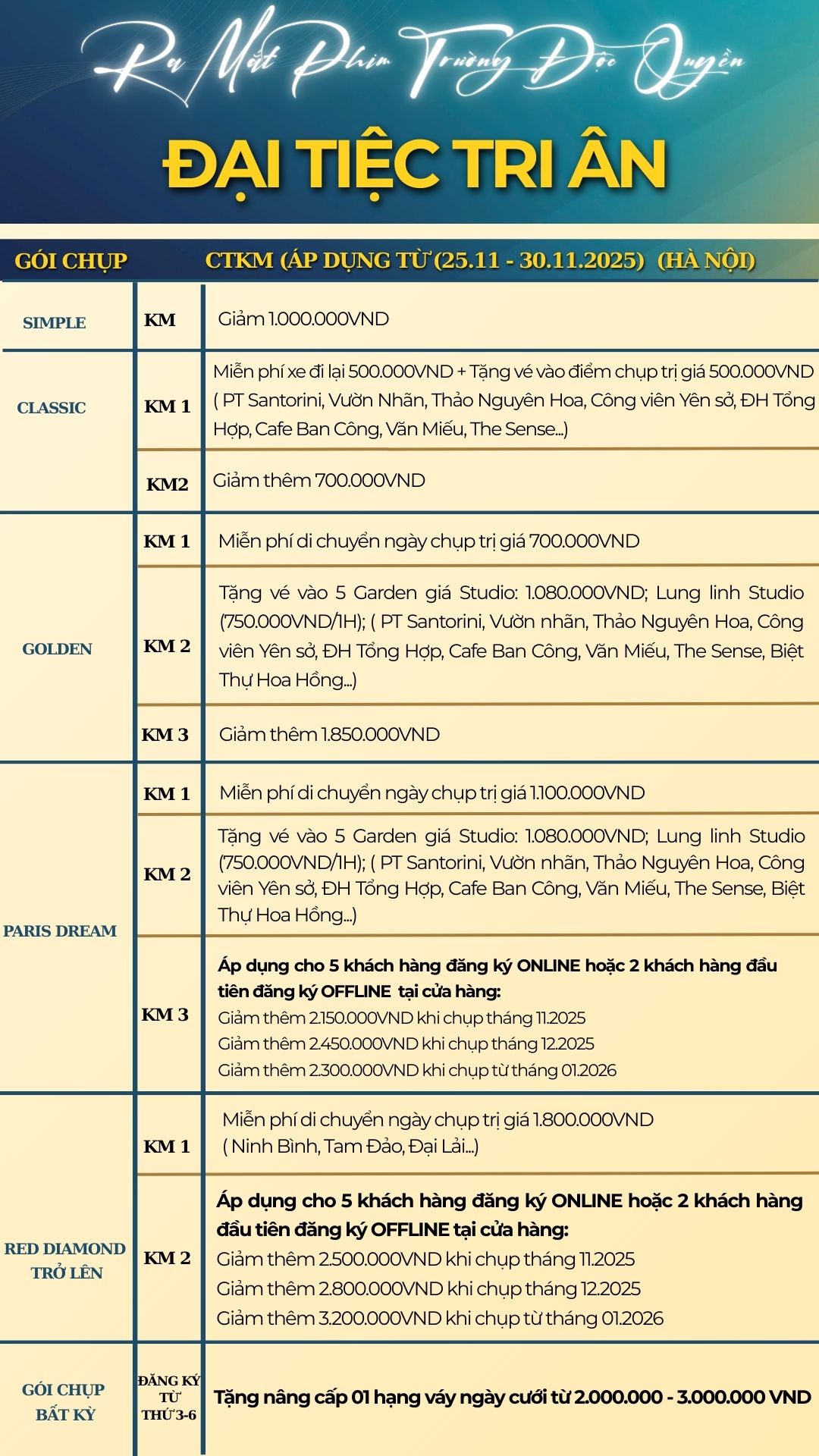 ƯU ĐÃI ĐẶC BIỆT khi khách hàng đăng ký gói chụp RED DIAMOND trở lên: