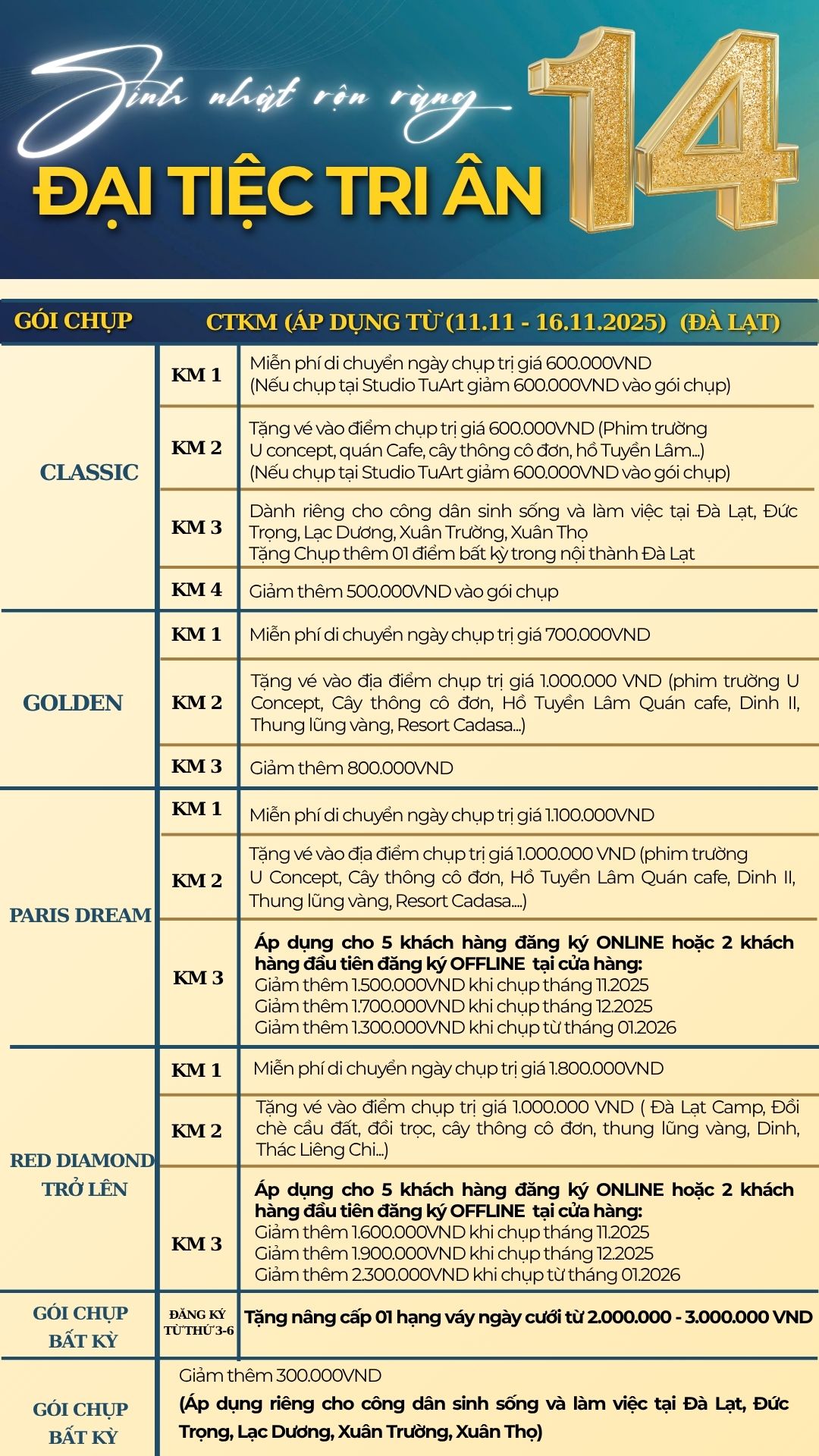 QUÀ CƯỚI ĐẶC BIỆT từ TuArt với TUẦN LỄ ƯU ĐÃI ĐẶC BIỆT LỚN NHẤT TRONG NĂM TỪ 11.11 – 16.11.2025